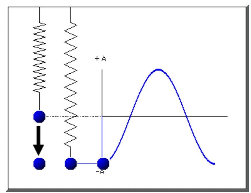 The solution given by (13.126) implies that the temporal displacement of the object is described by oscillations with frequency . This is shown in Fig. 13.2: the mass oscillates between the locations and .